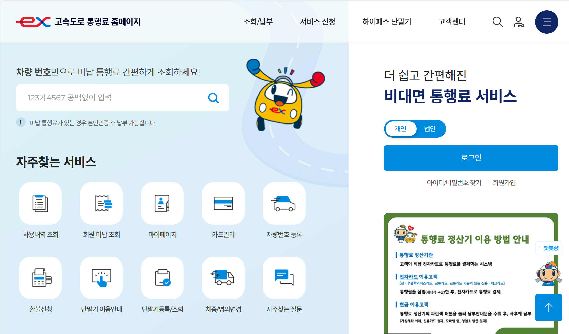 - 하이패스 공식 웹사이트 방문: 하이패스 홈페이지로 접속합니다.