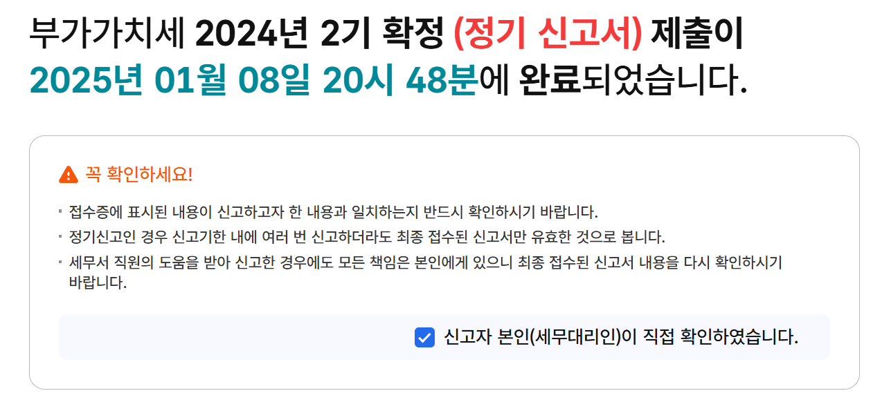 2기 확정신고: 다음 해 1월 1일 ~ 1월 25일