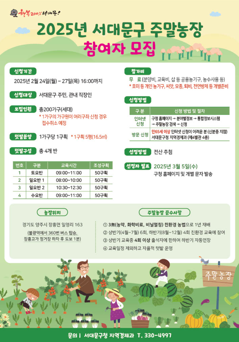서대문구청에서 2025년 친환경 주말농장 참여자를 모집합니다