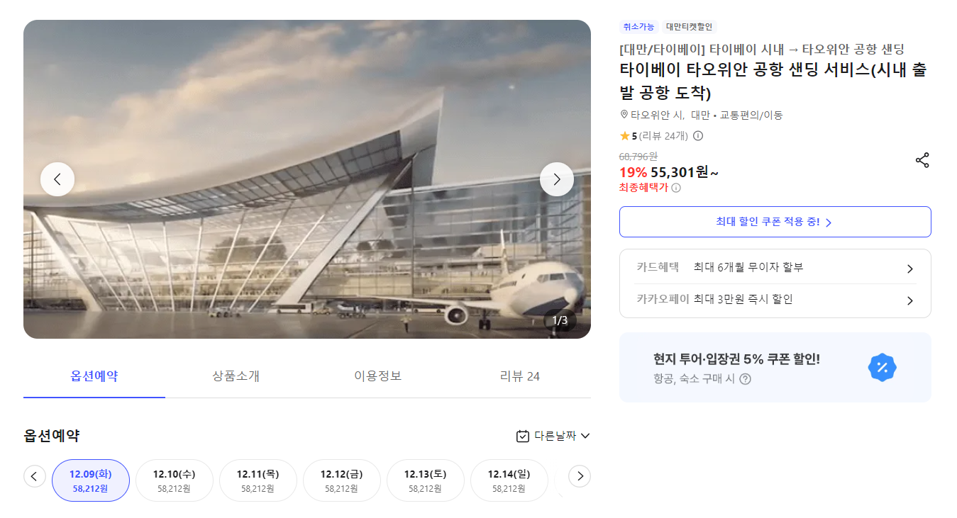 타이베이 타오위안 공항 샌딩 서비스(시내 출발 공항 도착) | NOL 인터파크투어 (interpark.com)
